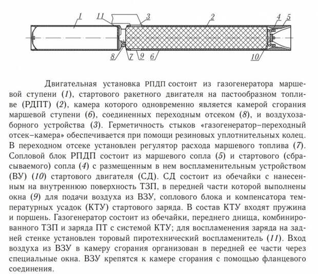 Схема ракетного двигателя на пастообразном топливе (из книги Ракетно-прямоточные двигатели на твёрдых и пастообразных топливах. Основы проектирования и экспериментальной отработки)