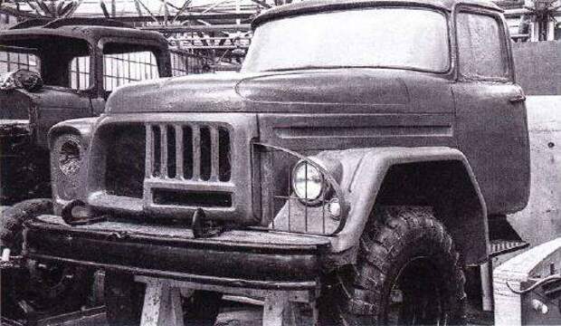 Поисковый макет будущего ЗИЛ-131. В некоторых источниках пишут, что зиловцы не оставили исходную облицовку гражданского 130-го в обмен на согласие военных с панорамным ветровым стеклом
