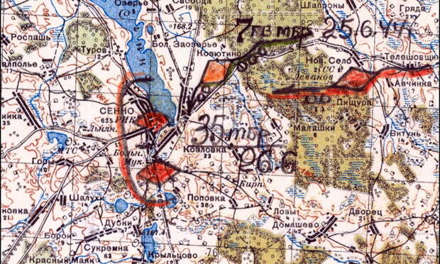 Ждать оставалось недолго: в 11:00 24 июня был получен приказ вводить конно-механизированную группу в прорыв. Передовые отряды группы столкнулись с противником уже к 21:00. Здесь документы корпуса и его частей расходятся. При «взгляде сверху» дезорганизованные немцы не могли эффективно сопротивляться и бежали в панике в сторону Сенно, но в документах 8-й гв.мбр ситуация оценивалась как «очень серьёзная» уже 24 июня.