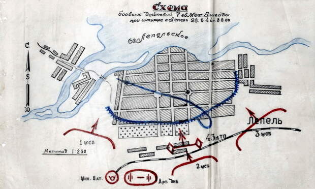Вскоре настал звёздный час 7-й гв.мбр. 28 июня бригада приблизилась к городу Лепель. Командир бригады атаковал в 07:00 широким фронтом, поделив танки 43-го гв.тп между тремя мотострелковыми батальонами. Как и в Сенно, танкисты застали немцев врасплох. Было уничтожено два танка и 425 солдат и офицеров противника, 93 взяты в плен, захвачены трофеи, включая склады.